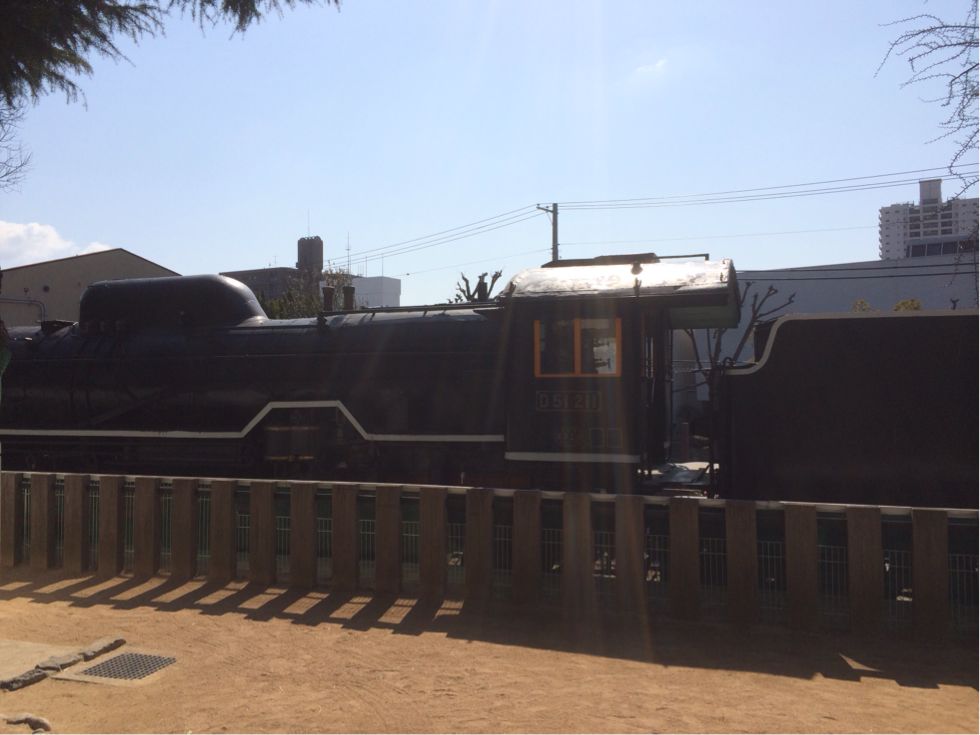 広場にはなぜか電車が。