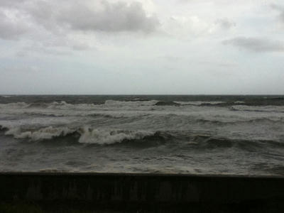 風は非常に強く、海も大荒れに。